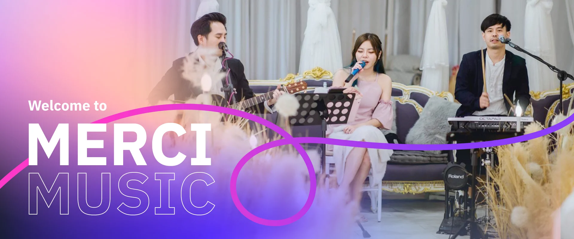 ขอบคุณที่โลกนี้มีดนตรี กว่า 19 ปี บนถนนสายดนตรีอาชีพ เราไม่หวังอะไรนอกจากได้บรรเลงดนตรีเพราะๆ ในทุกๆวันและตลอดไป เพื่อให้คุณมีความสุขเพลิดเพลินไปกับเรา ภายใต้แบรนด์มากมาย บรรเลงรักแบนด์ ร้องเพลงรักแบนด์ ฮีลใจแบนด์ ชิลล์เวอร์แบนด์ และ Merci Music เรามีศิลปิน นักร้องนักดนตรีมืออาชีพ เครื่องเสียง ไฟแสงสี เวที คาราโอเกะ ทุกอย่างเป็นของเราเอง ไม่ต้องจ้างแยก